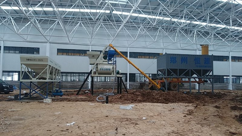 1. 攪拌主機(jī)與骨料提升機(jī)構(gòu)使用的是JS1000型雙臥軸強(qiáng)制式攪拌機(jī),攪拌強(qiáng)力、效率高、質(zhì)量好;