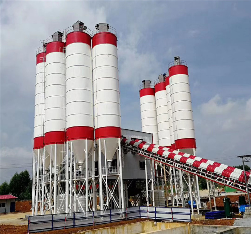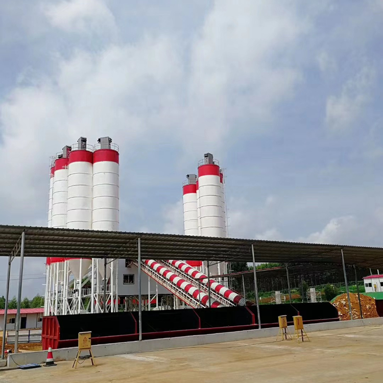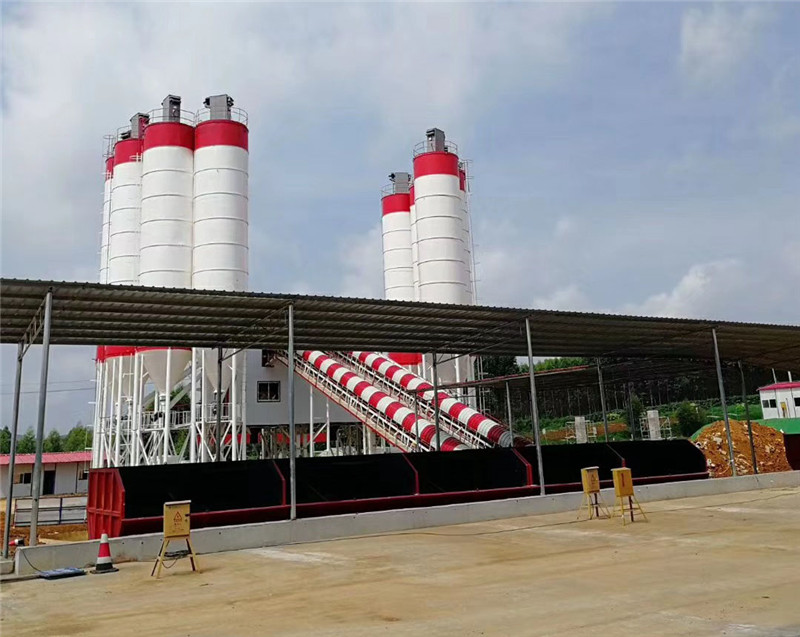 3.HZS180混凝土攪拌站中的砂石上料系統(tǒng)采用大寬度人字皮帶上料,可以按需設(shè)置人行安檢走道。