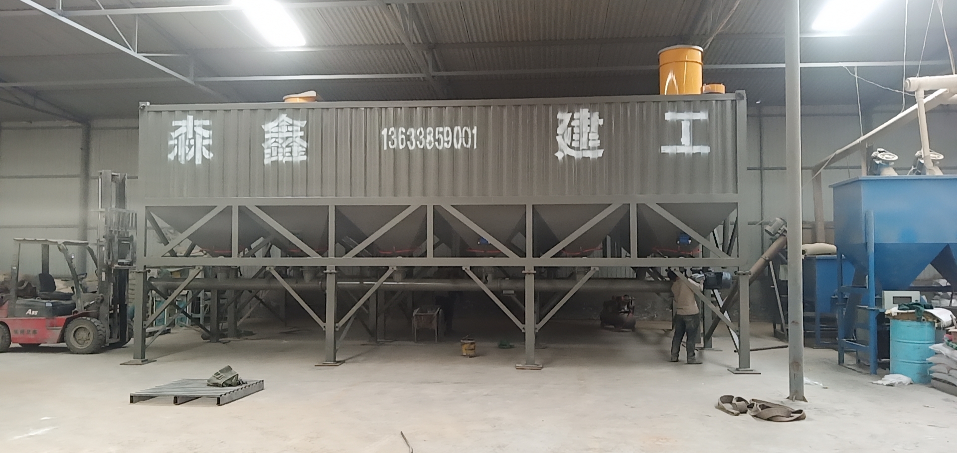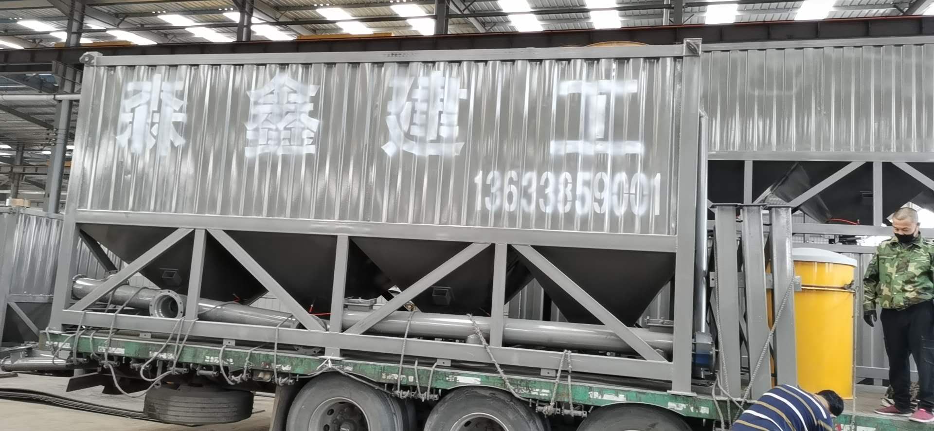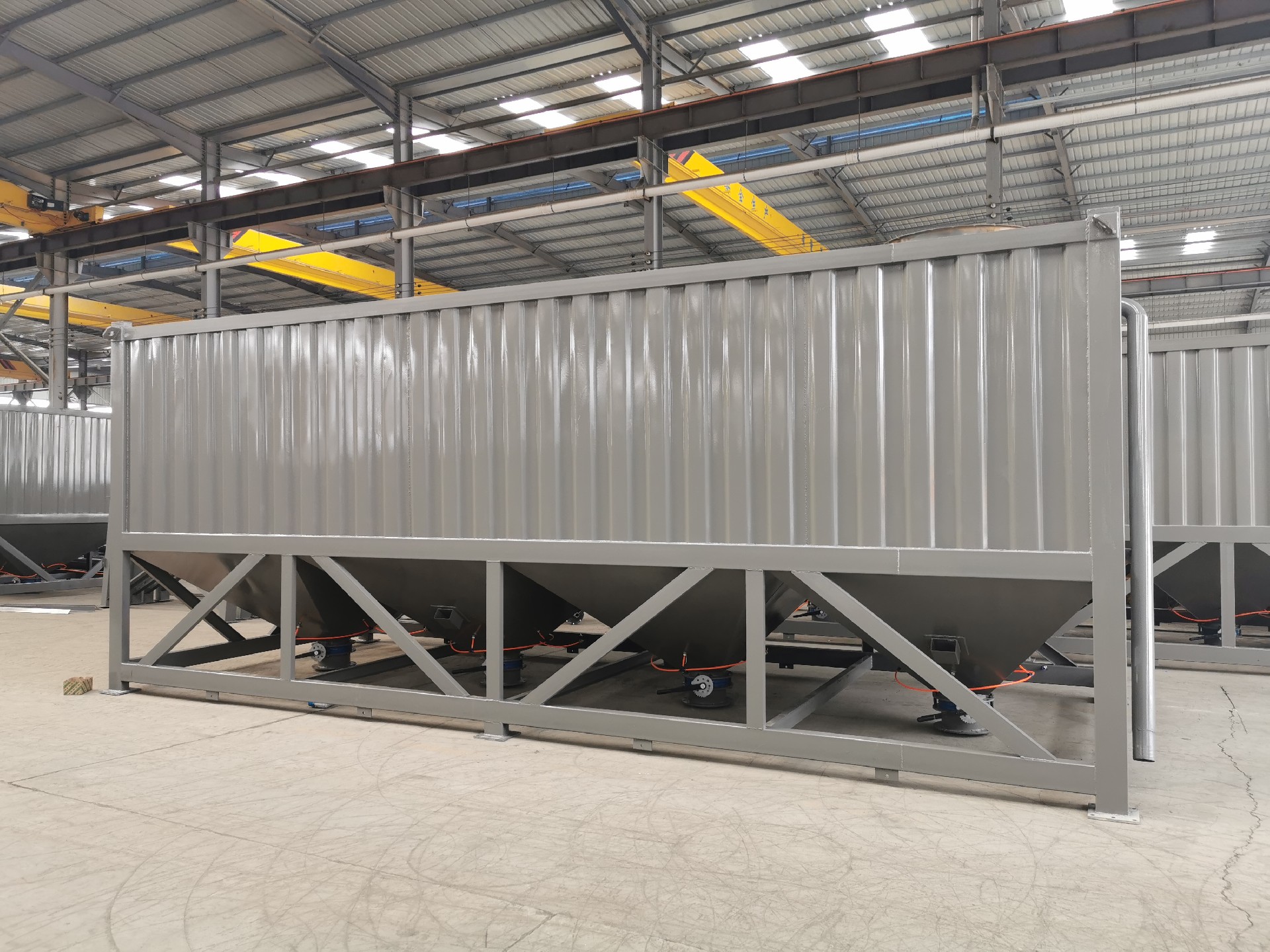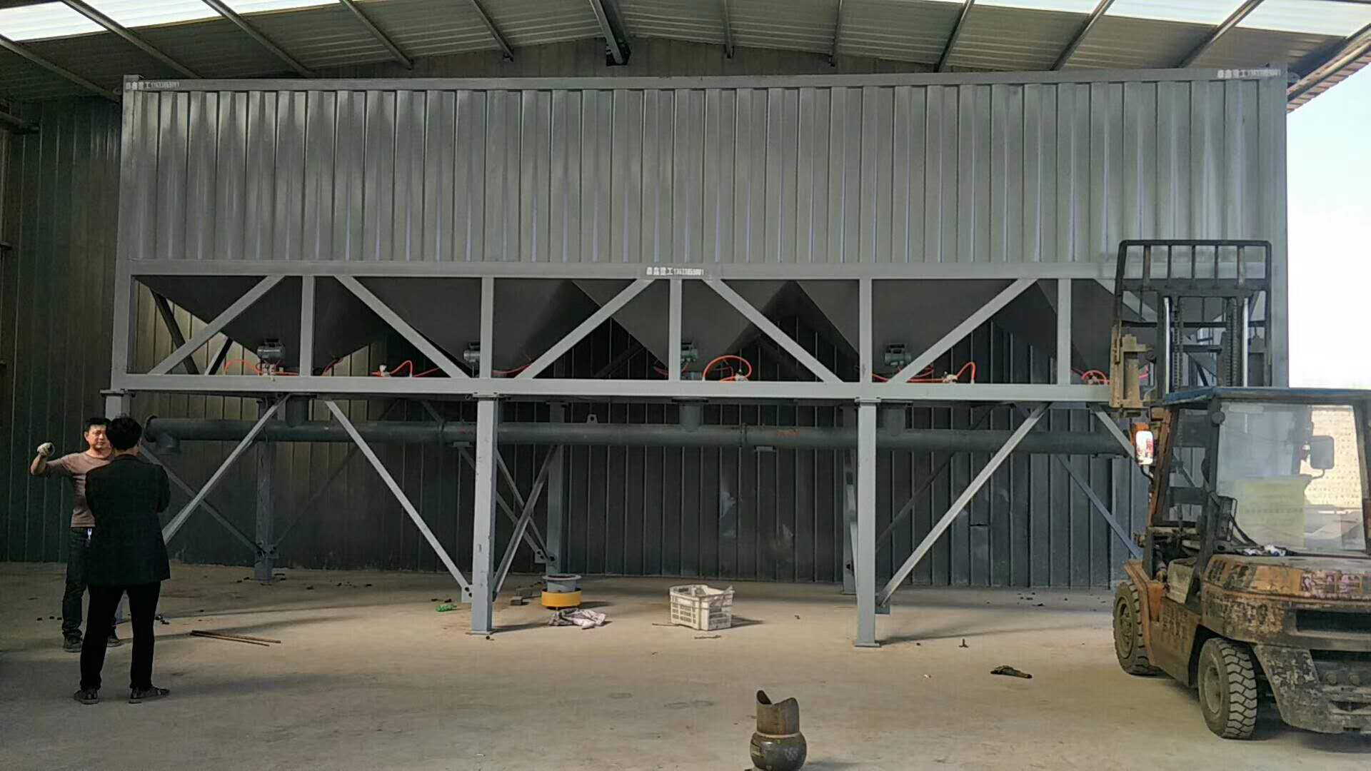 臥式水泥倉為方形,底部由數(shù)條支腿支撐,出料錐體為方形錐體,倉體為瓦楞板和型材組成的框架焊接而成,整體高度偏低。臥式水泥倉在底部設(shè)有水泥卸料口和螺旋輸送機,可方便的進(jìn)行卸料和輸送。和傳統(tǒng)立式水泥倉相比,臥式水泥倉對地基要求低,可直接立放于地面,可方便的使用卡車或平板車運輸而無須拆卸。臥式水泥倉,常見2斗,4斗,6都等,常見規(guī)格30噸,50噸,80噸,100噸等,可以根據(jù)客戶要求定制。